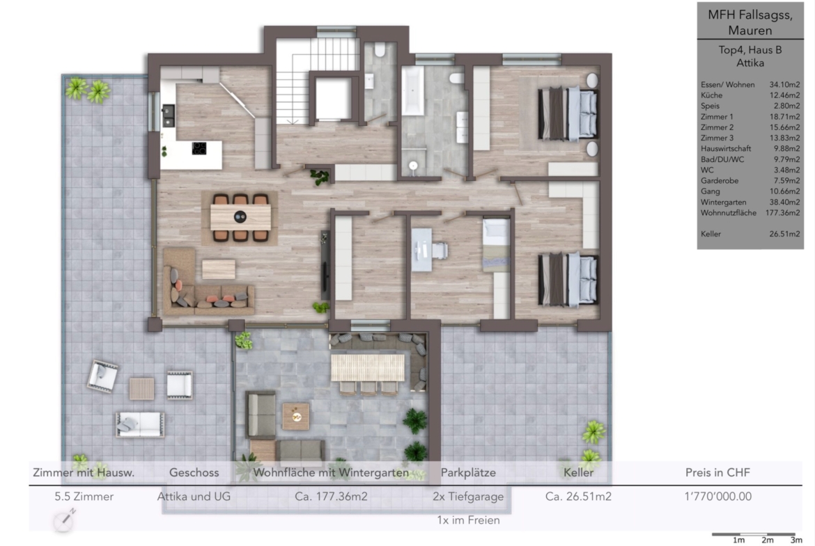 In der idyllischen Gemeinde Mauren entstehen moderne 4.5-Zimmerwohnungen mit lichtdurchfluteten Räumen, hochwertiger Ausstattung und grosszügigem Wintergarten. Jede Einheit verfügt über zwei Tiefgaragenplätze, einen Aussenparkplatz sowie ein Kellerabteil. Die Wohnungen sind noch im Bau, Käufer können den Innenausbau individuell mitgestalten. Die zentrale Lage verbindet Ruhe, Natur und eine hervorragende Anbindung. Einkaufsmöglichkeiten, Schulen und Freizeitangebote sind schnell erreichbar.